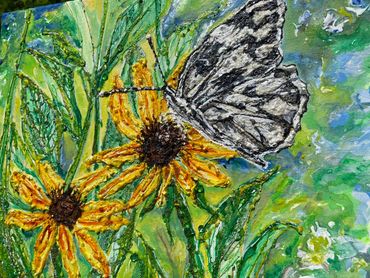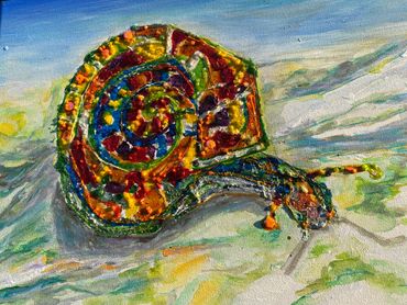 If you are around kids, you’re likely familiar with the slime craze. If you live with a creative kid like mine, who simply loves to experiment, you have a lot of slime! Slime is chemistry! Slime is Art! The process starts with glue as the base media. Activators change the substance to neither a liquid nor solid. We use the slime by manipulating it onto a canvas creating unique SLIME ART